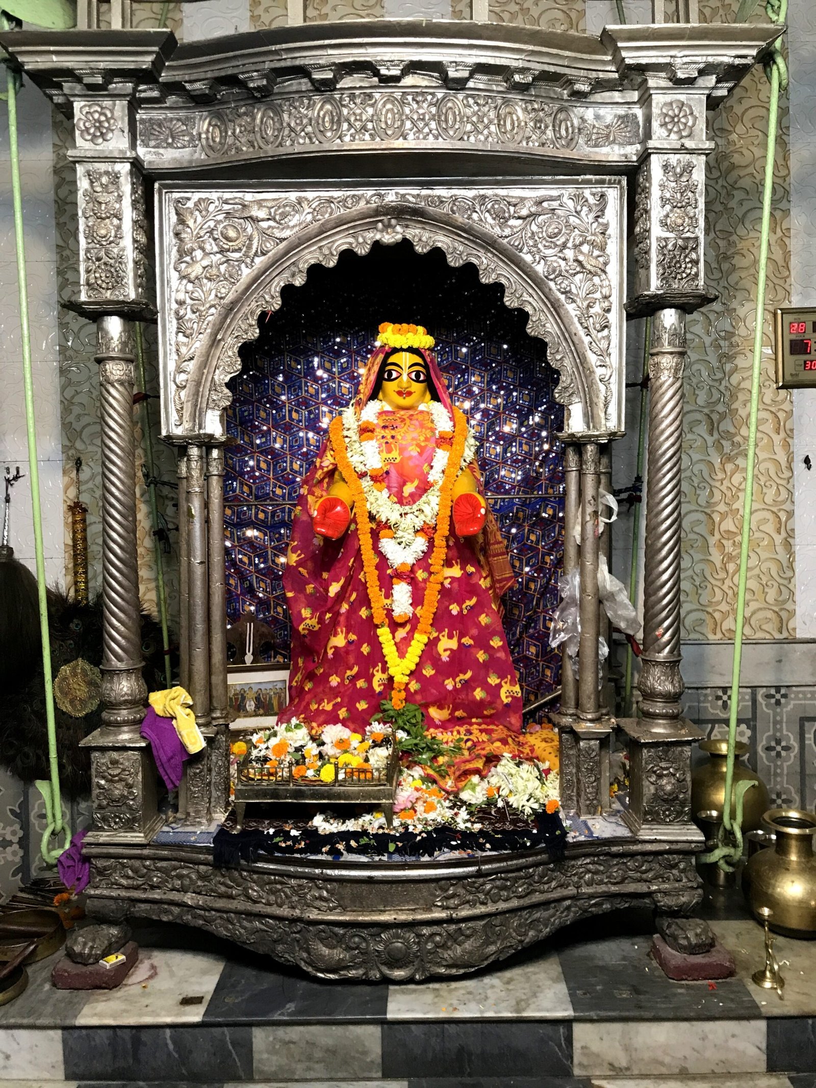 Information – This beautiful neem deity of Lord Caitanya Mahaprabhu stands with His arms lovingly extended towards His devotees. Vishnupriya Devi (Wife of Lord Caitanya), who was just sixteen when Lord Caitanya Mahaprabhu took sannyasa, worshiped this deity for eighty years before she departed from this material world at the age of ninety-six.