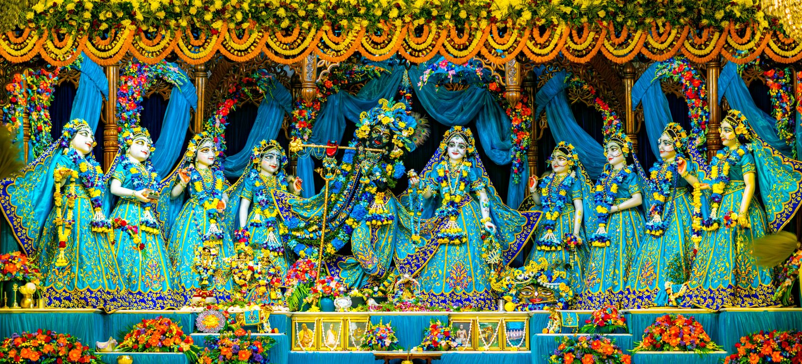 Information – The beautiful larger than life size Sri Sri Radha Madhava, surrounded by Their Ashta-sakhis (eight principal gopi friends)
