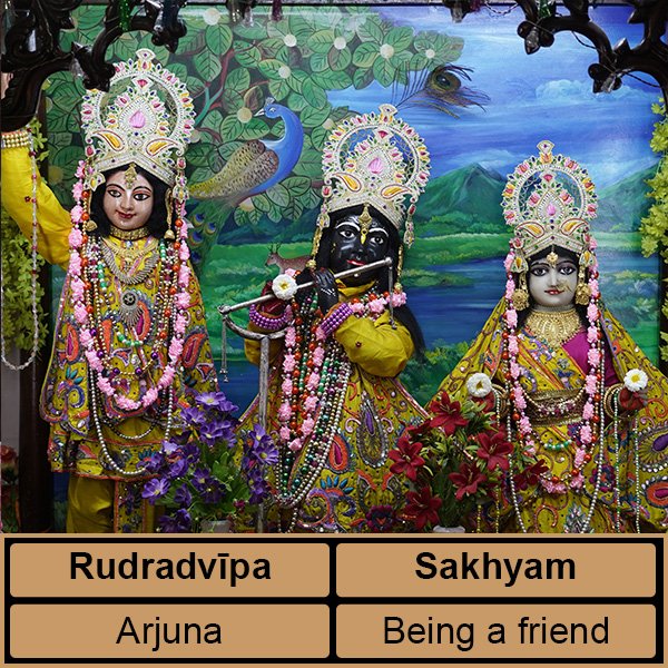 Rudradvipa (Sakhyam : Being a friend) Sri Navadvipa-dhama Parikrama Antardvipa Simantadvipa Godrumadvipa Madhyadvipa Koladvipa Ritudvipa Jahnudvipa Modadrumadvipa Rudradvipa Rudradvipa Introduction Srila Prabhupada Audio Holy Places in Rudradvipa Rudradvipa Gaudiya Math Nidaya Ghat Sankarapura Sri Pulina (Vṛndāvana) Rudradvipa Photos Video Share