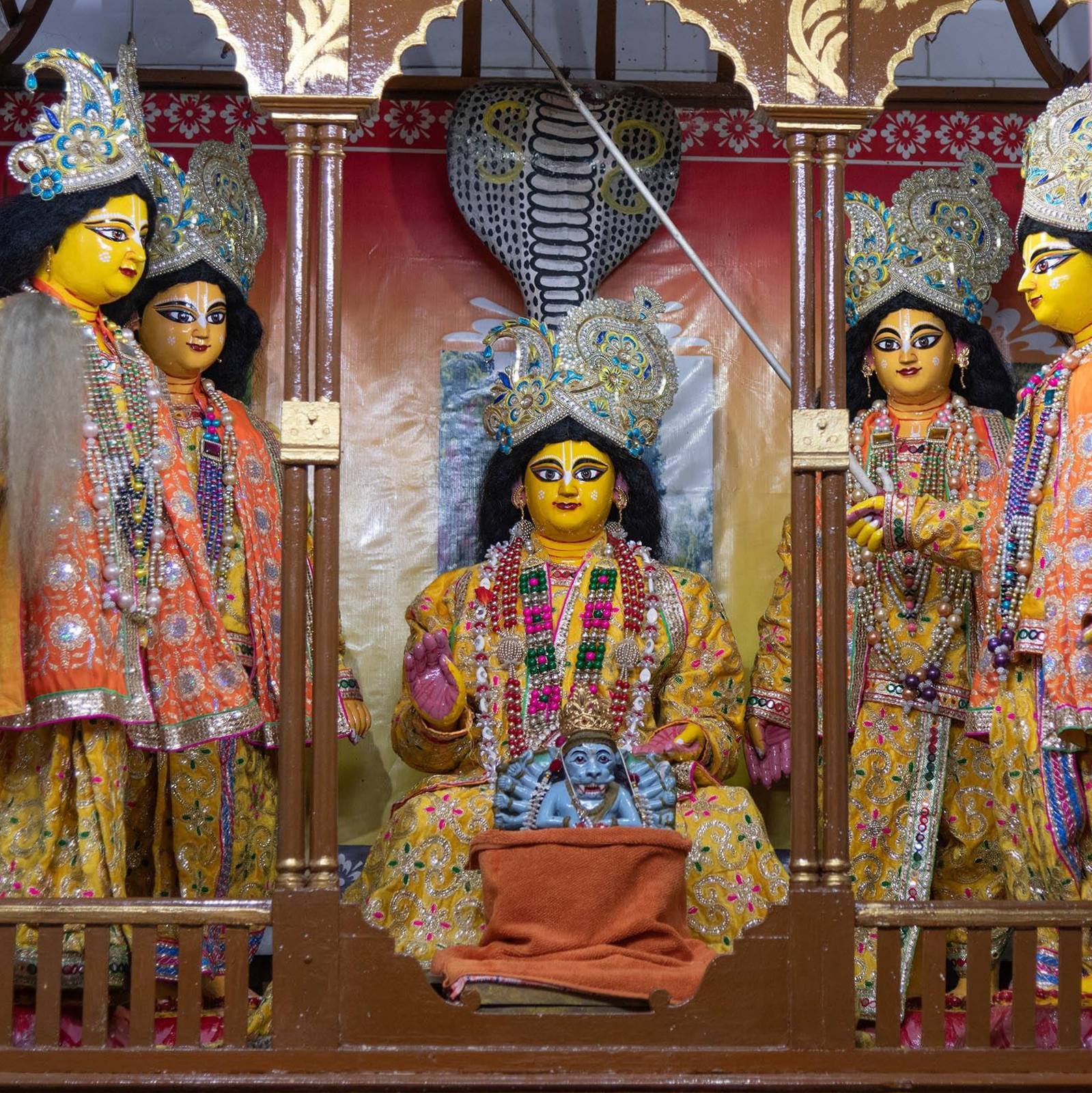 Srivasa Aṅgan, the home of Srivasa Pandita—an incarnation of Narada Muni—houses deities of Gaura-Nityananda with a broken mridanga, Panchatattva, Nrsimhadeva, Radha Madan Mohan, and Gourhari. It is famous for Lord Caitanya’s nocturnal kirtans.