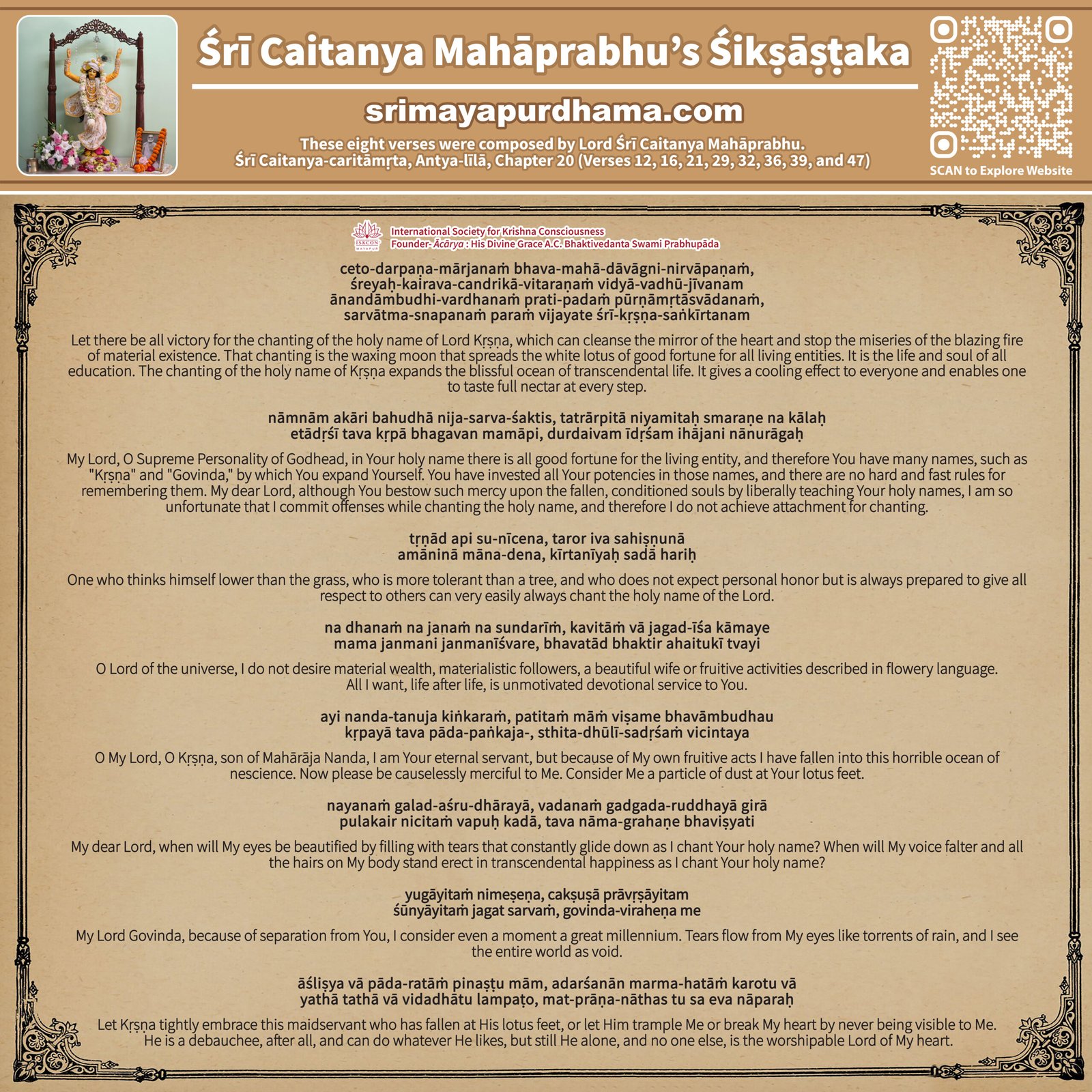 Krsnadasa Kaviraja Goswami has written this song “ceto-darpana-marjanam bhava-maha-davagni-nirvapanam”. These eight verses were composed by Lord Śrī Caitanya Mahāprabhu.